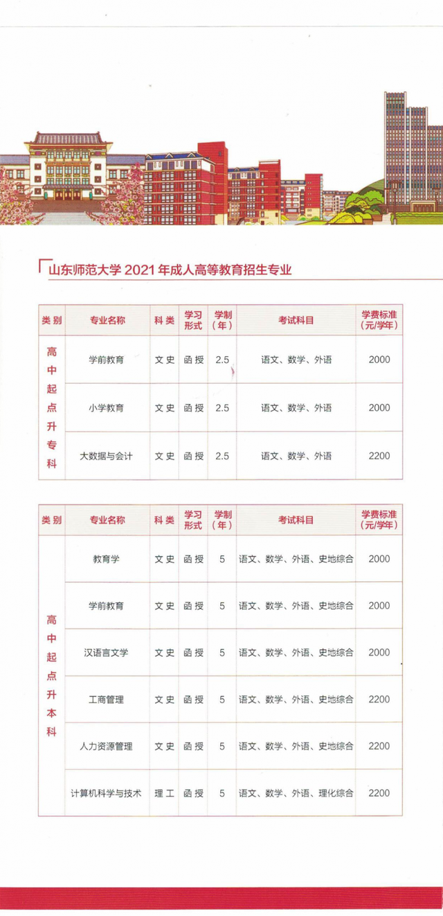 山东师范大学成人教育创始于1956年,1956年4月,受当时的山东省教育厅委托,学校创办函授教育,创立了建国后山东省第一个函授部,山东师范大学函授学历含金量高,学信网电子注册,终身可查,受到社会企事业单位的广泛认可。