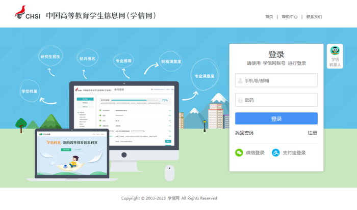 建议收藏/新生入学如何在学信网注册及学籍查询发表时间:2023-12-12 16:48 学信网是教育部唯一指定查询高等学历的网站,同时也是中国唯一能查询到高等学历教育信息的地方。用人单位或者国家看你的学历是否属实,参考依据就是学信网的认证。目前来说,学信网可查询的最低学历是专科。 那么新生被录取确认入学后,如何查询自己的学籍,确认自己在籍呢?别着急,我们往下看! 第一步:浏览器搜索进入学信网